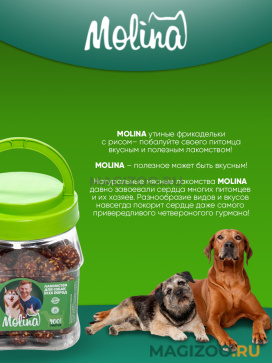 Лакомство MOLINA для взрослых собак и щенков всех пород в виде утиных фрикаделек – побалуйте своего питомца вкусным и полезным лакомством!