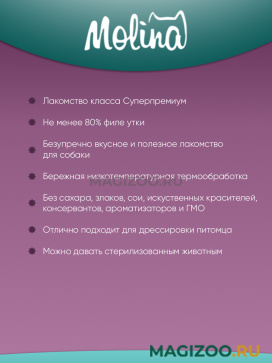 Лакомство MOLINA в виде ломтиков утки – побалуйте своего питомца вкусным и полезным лакомством!