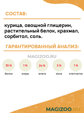 Состав: курица, овощной глицерин, растительный белок, крахмал, сорбитол, соль.