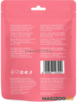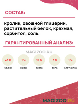 Состав: кролик, овощной глицерин, растительный белок, крахмал, сорбитол, соль.
