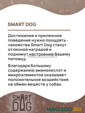 Достижения и прилежное поведение нужно поощрять - лакомства Smart Dog станут отличной наградой и поднимут настроение Вашему питомцу.