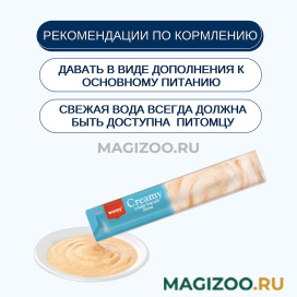 Витамины A, B2, B3, B5, D3, E в составе крем-лакомства поддерживают иммунитет и общее состояние здоровья вашего питомца. Ксантановая камедь обеспечивает нежную текстуру пюре.