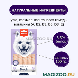 Информация о составе и ингредиентах, цветовом решении, технических и иных характеристиках, стране-изготовителе, внешнем виде и комплекте поставки товара носит справочный характер и основана на последних доступных к моменту публикации сведениях. Доставка данного товара осуществляется во все регионы РФ.В ассортименте продукции WANPY Вы найдёте самые разнообразные лакомства для собак и кошек. Лакомства ежедневно служат дополнением к основному рациону животных, в частности, в качестве поощрения за хорошее поведение и выполнение команд, а также как источник дополнительных полезных веществ.