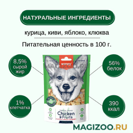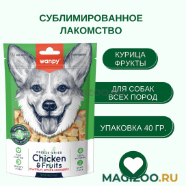 Wanpy Dog сублимированное лакомство для собак "Курица и фрукты" - это уникальное и полезное угощение, которое сделает день Вашего питомца ярче и вкуснее.