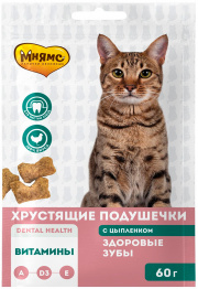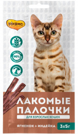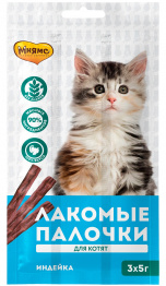 Лакомства для кошек «Мнямс» выполнены из отборных, натуральных ингредиентов. Они содержат в себе полезные добавки, которые способствуют выведению шерсти, удалению зубного камня, улучшению состояния кожи, увеличению активности и т. д. Все линейки угощений разработаны ведущими ветеринарами и имеют разграничения по возрасту — для котят и взрослых кошек. Продукция упакована в специальные пачки, которые отлично сохраняют тонкий и манящий аромат лакомств. Несмотря на то, что товар обладает высокими вкусовыми качествами и включает много витаминов и микроэлементов, его нельзя давать как основной корм. Лучше всего использовать этот продукт как поощрение за правильное поведение.