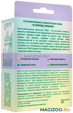 Мультивитаминное лакомство для собак «В период линьки» TRIOL - это источник полезных веществ, необходимых для поддержания естественной красоты и крепкого здоровья вашей собаки на долгие годы.