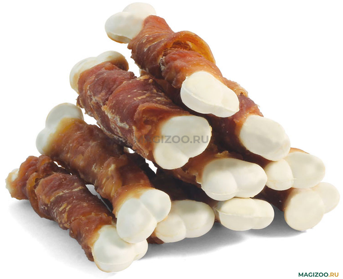 Жевательные лакомства из сыромятной кожи, обернутые мясом – это не только лучшая награда для вашего любимца, но и полезный способ чистки зубов.