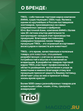Информация о составе и ингредиентах, цветовом решении, технических и иных характеристиках, стране-изготовителе, внешнем виде и комплекте поставки товара носит справочный характер и основана на последних доступных к моменту публикации сведениях. Доставка данного товара осуществляется во все регионы РФ.TRIOL – это яркие, качественные и полезные товары для животных, специально разработанные с учетом их физиологии, потребностей и вкусов и пожеланий их владельцев. В разработке товаров торговой марки TRIOL участвуют профессионалы в области разведения, воспитания и ухода за животными и именно благодаря этому вся продукция приносит радость Вашему питомцу, облегчает уход за ним и приносит в Вашу жизнь яркие краски!