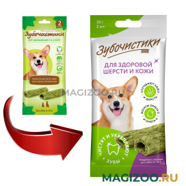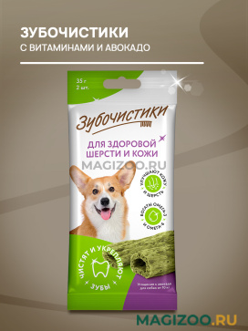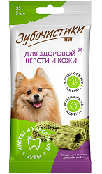 Зубочистики с витаминами для здоровья кожи и шерсти для собак средних и крупных пород весом от 10 кг.