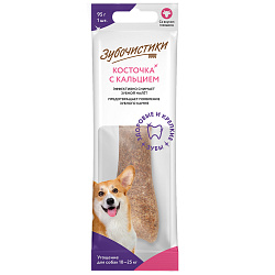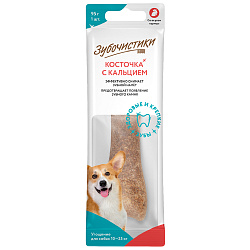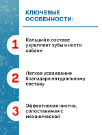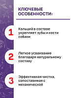 Запатентованная структура делает косточку достаточно жесткой, что обеспечивает максимально эффективную чистку зубов, сопоставимую с механической. Существенное содержание кальция укрепляет кости и зубы собаки.