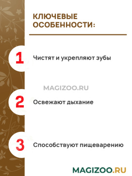 Оптимальный размер этих косточек разработан для собак миниатюрных пород. Не крошатся, не оставляют следов на полу. Прекрасно чистят зубы и освежают дыхание.