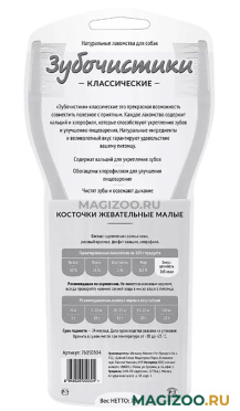 Зубочистики классические — это прекрасная возможность совместить приятное с полезным. Каждое лакомство содержит кальций и хлорофилл, которые способствуют укреплению зубов и улучшению пищеварения. Натуральные ингредиенты и великолепный вкус гарантируют удовольствие Вашему питомцу.
