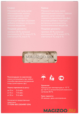 Состав: мясокостная мука, сухое обезжиренное молоко, пивные дрожжи, сухая молочная сыворотка, дикальций фосфат, вкусовая добавка курица, витамины, аминокислоты, вспомогательные вещества.