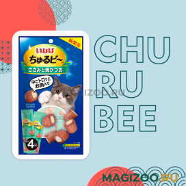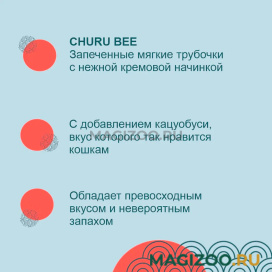 Супер-премиальное лакомство Churu Bee (ЧУРУ БИ) для кошек с нежной кремовой начинкой на основе филе фермерской курицы и кусочков мяса тунца Кацуо от японского производителя Inaba изготовлено исключительно из натуральных полезных ингредиентов.