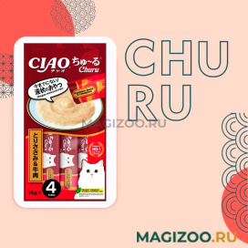 Супер-премиальное лакомство пюре CIAO Churu (ЧАО ЧУРУ) для кошек на основе кусочков нежного филе фермерской курицы с говядиной от японского производителя Inaba изготовлено исключительно из натуральных полезных ингредиентов и отличается высоким процентом влажности, благодаря чему поддерживается водный баланс организма кошки.