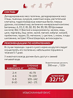 Белковые растительные экстракты, злаки, мясо и субпродукты (курица мин. 4 %), масла и жиры, минералы.