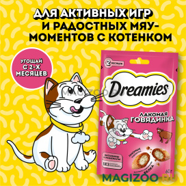 Лакомство для кошек DREAMIES с добавлением говядины – это достойная награда вашему любимому зверю.