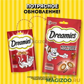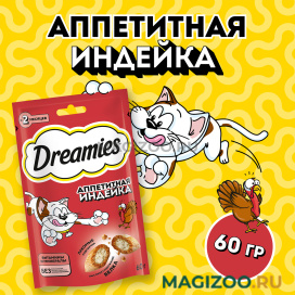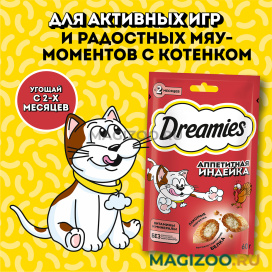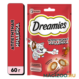 Лакомство для кошек DREAMIES с добавлением индейки - это достойная награда вашему любимому зверю.