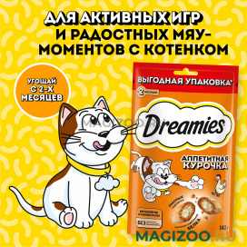 Лакомство для кошек DREAMIES с курицей – это достойная награда вашему любимому зверю.