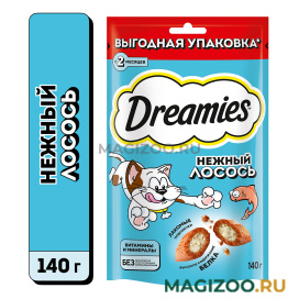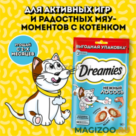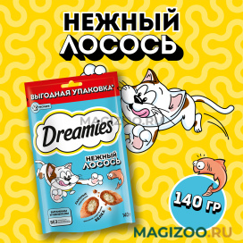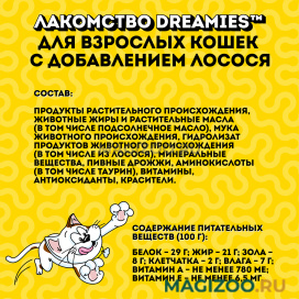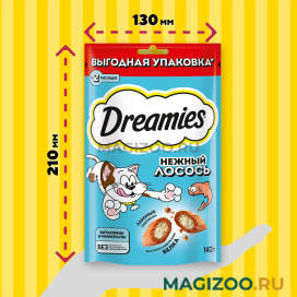 Лакомство для кошек DREAMIES с добавлением лосося – это достойная награда вашему любимому зверю.