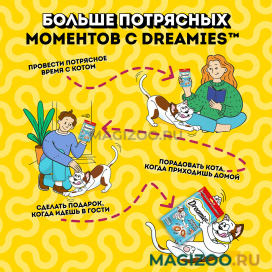 Просто рыбная сказка для вашего кота! Давайте вашему котику лакомые подушечки DREAMIES, когда хотите побаловать его. В состав лакомства входят важные для кошки питательные вещества, витамины и минералы, а значит, такое угощение приносит не только радость, но и пользу.