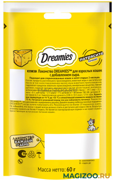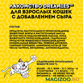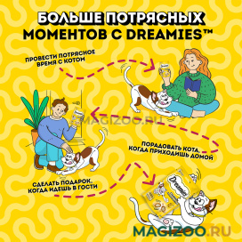 Не удивляйтесь, если при виде DREAMIES, ваш томный кот превратится в самое игривое существо на свете. Это все ради вкусной начинки внутри хрустящей подушечки. Давайте вашему котику лакомые подушечки DREAMIES, когда хотите побаловать его. В состав лакомства входят важные для кошки питательные вещества, витамины и минералы, а значит, такое угощение приносит не только радость, но и пользу.