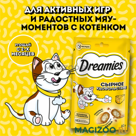 Лакомство для кошек DREAMIES с добавлением сыра – это достойная награда вашему любимому зверю.