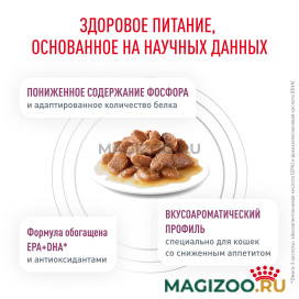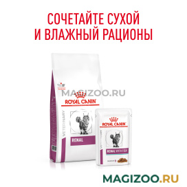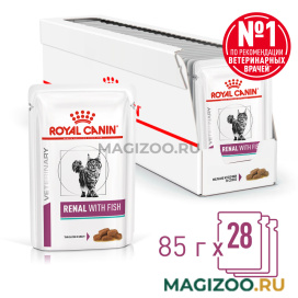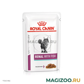 Влажный корм ROYAL CANIN RENAL WITH FISH, мелкие кусочки в соусе - полнорационный диетический корм для взрослых кошек для поддержания функции почек при хронической болезни почек. Пониженное содержание фосфора и умеренное количество белка помогает поддерживать функции почек. Специально разработанный ароматический профиль помогает удовлетворить особые вкусовые предпочтения кошки.
