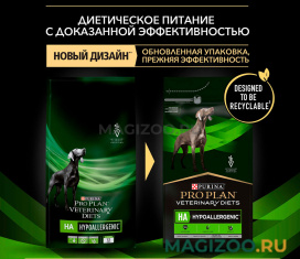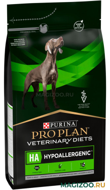 Корм сухой полнорационный диетический PRO PLAN® VETERINARY DIETS HA Hypoallergenic (Гипоаллергеник) для щенков и взрослых собак для снижения пищевой непереносимости ингредиентов и питательных веществ, с гидролизованным белком и отборными источниками углеводов. Подходит для собак всех пород. Использование данного корма рекомендовано под наблюдением ветеринарного врача.