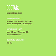 Витамин А – 22 500 МЕ, витамин D3 – 850 МЕ, железо – 38 мг, йод – 3,8 мг, медь – 12 мг, марганец – 49 мг, цинк – 148 мг, селен – 0,06 мг.
