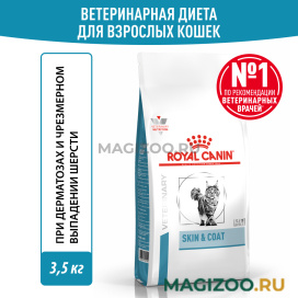 Полнорационный диетический корм для стерилизованных кошек, для поддержания защитных функций кожи при дерматозах и чрезмерном выпадении шерсти.