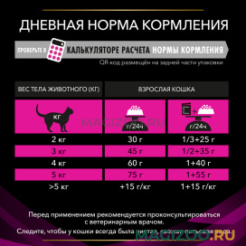 При мочекаменной болезни важно правильное и сбалансированное питание. Корм ветеринарной линейки разработан с учётом этой потребности питомца. Он сбалансированный, имеет сдержанный аромат. Кошке нравится вкус - мясной ингредиент - курица делаем корм вкусным.