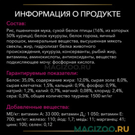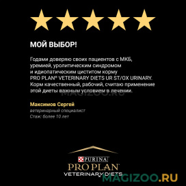 Корм сухой полнорационный диетический PRO PLAN® Veterinary Diets UR St/Ox Urinary (Уринари) для взрослых кошек при болезни нижних отделов мочевыводящих путей, с курицей. Корм рекомендуется для растворения струвитных камней и снижения вероятности их повторного образования, со свойствами подкисления мочи и низким содержанием магния. Продукт разработан также для диетотерапии кошек с заболеваниями нижних отделов мочевыводящих путей. Использование данного корма рекомендовано под наблюдением ветеринарного врача.