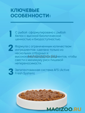 - С рыбой: сформулировано с рыбой: белок с высокой биологической ценностью и биодоступностью.