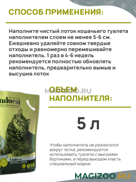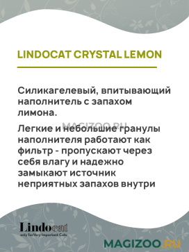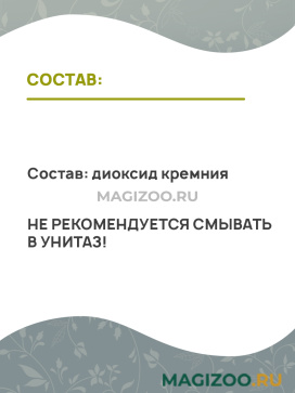 Силикагелевый, впитывающий наполнитель с запахом лимона. Представляет собой полупрозрачные гранулы диоксида кремния.