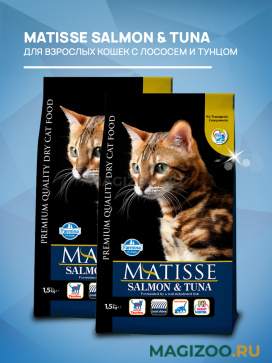 Обогащенная таурином рецептура корма MATISSE SALMON & TUNA обеспечивает Вашему питомцу здоровую и активную жизнь.