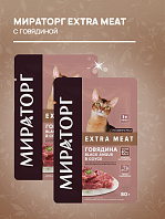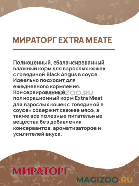 Консервированный полнорационный корм Extra Meat для взрослых кошек с говядиной в соусе» содержит свежее мясо, а также все полезные питательные вещества без добавления консервантов, ароматизаторов и усилителей вкуса.