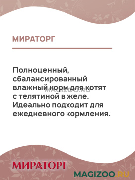 Полноценный, сбалансированный влажный корм для котят с телятиной в желе. Идеально подходит для ежедневного кормления.