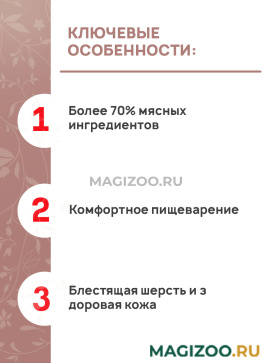 - Более 70% мясных ингредиентов.