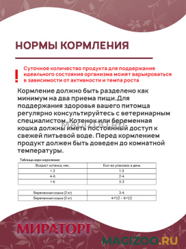Корм Мираторг PRO MEAT супер-премиум класса создан для животных с особыми вкусовыми предпочтениями. Высокое содержание свежего диетического мяса, премиальный состав, адаптивный уровень клетчатки, витамины и минералы обеспечат питомцев энергией для здоровой активной жизни.