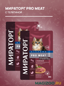 Первый год жизни очень важный период для котенка. Для того, чтобы растущий питомец с самых первых дней получал все самое лучшее, компания Мираторг создала консервированный корм PRO MEAT с диетической куриной грудкой. Высокое содержание белка животного происхождения, витамины, минералы и жирные кислоты поддержат иммунитет, здоровье и рост вашего маленького питомца.