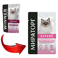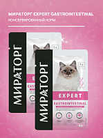 Полнорационный консервированный корм Мираторг Expert Gastrointestinal «бережная забота о пищеварении» для кошек всех пород.