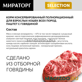 Мираторг Selection полнорационный влажный корм с мясом говядины для взрослых кошек всех пород.