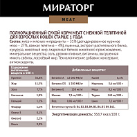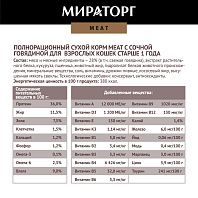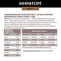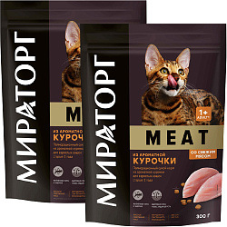 Полнорационный сухой корм МИРАТОРГ MEAT из ароматной курочки для взрослых кошек старше 1 года.