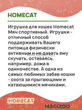 Игрушка для кошек Homecat Мяч спортивный. Игрушки - отличный способ поддерживать Вашего питомца физически активным и не давать ему скучать, оставаясь, например, дома в одиночестве. А одна из самых любимых забав кошки - охота за прыгающими и катающимися мячиками.