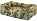 Лежак из качественной камуфляжной ткани имеет прямоугольную форму с плотно набитыми синтепухом бортами и вынимаемой подушкой на молнии, наполненной пенопластовыми гранулами, которые зашиты в отдельный чехол.