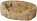 Уютный овальный лежак из приятного на вид и на ощупь плюшевого меха бежевого цвета с пухлыми бортами и подушкой, набитыми синтепухом.
