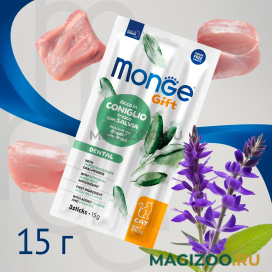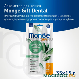 Лакомство MONGE GIFT DENTAL для кошек "Мягкие палочки" со свежим мясом кролика и шалфеем для чистки зубов.