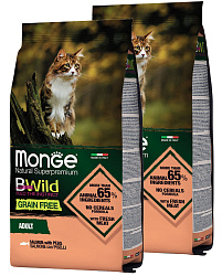 Сухой корм MONGE BWILD GRAIN FREE CAT ADULT SALMON беззерновой для взрослых кошек с лососем и горохом (1,5 кг)
