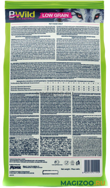 Каждый корм линии BWild Dog содержит более 65 % мяса, при этом в состав не добавлен картофель и ограничено количество злаков.